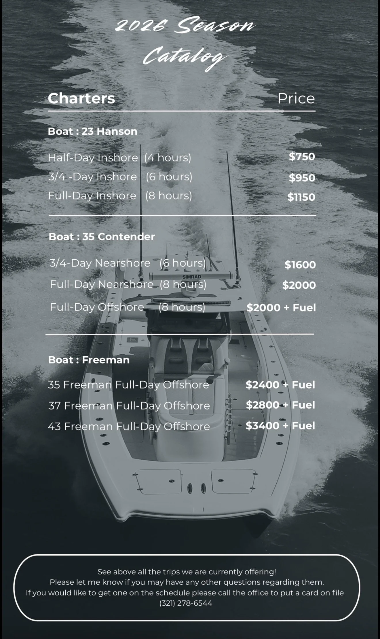 For last minute bookings or questions call or text 239-307-8661 Trips available this week!